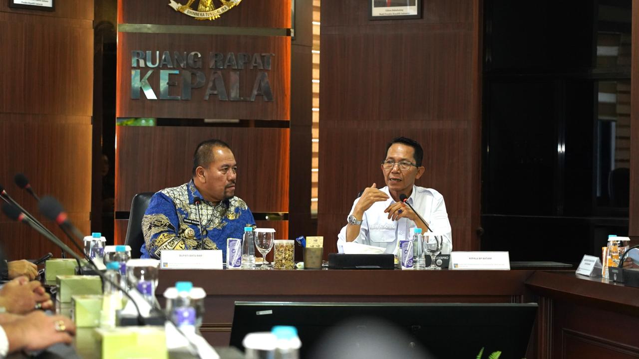 Batam, STB – Kepala BP Batam Amsakar Achmad menerima kunjungan kerja Bupati Batu Bara Baharuddin Siagian pada Rabu (21/1/2026) guna mendiskusikan transformasi infrastruktur air dan strategi penguatan ekosistem investasi, di Ruang Rapat Lantai 8, Gedung Annex BP Batam.