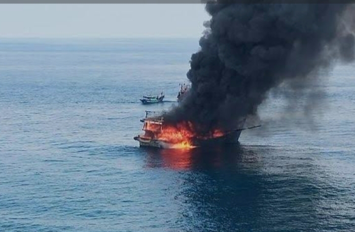 Api pertama kali muncul dari bagian lambung depan kapal. Kobaran api cukup besar dan sempat memunculkan kepulan asap hitam pekat yang terlihat dari kejauhan.