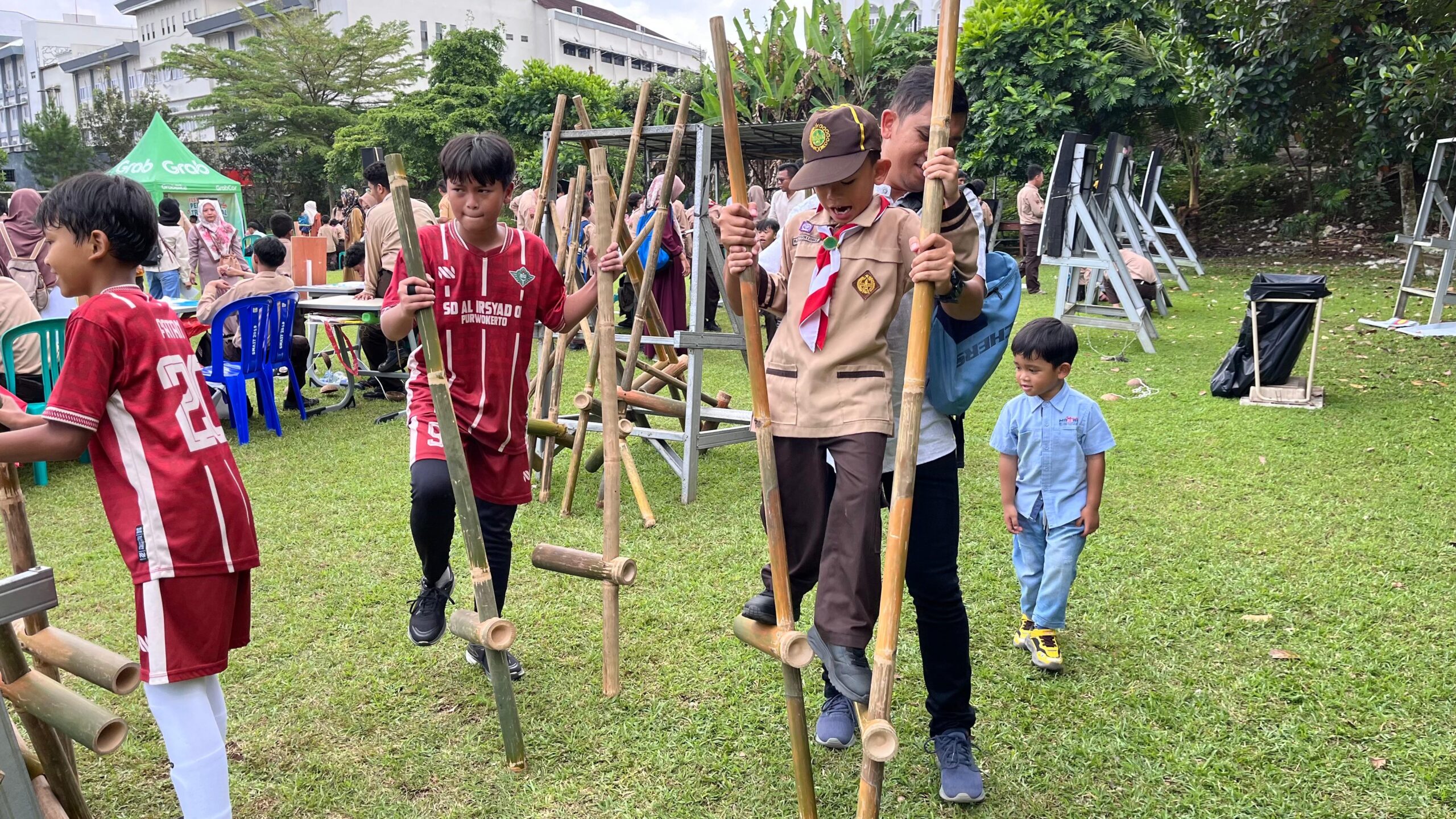 Purwokerto, STB – Ratusan siswa dari tingkat SD hingga SMA tampak antusias mengikuti Festival Permainan Tradisional yang digelar di Lapangan Sekolah Al Irsyad Al Islamiyyah Purwokerto, Sabtu (6/9/2025) pagi. Dengan semangat, mereka mencoba berbagai permainan khas Nusantara, mulai dari egrang, gobak sodor, tarik tambang, engklek, hingga jalan bakiak.