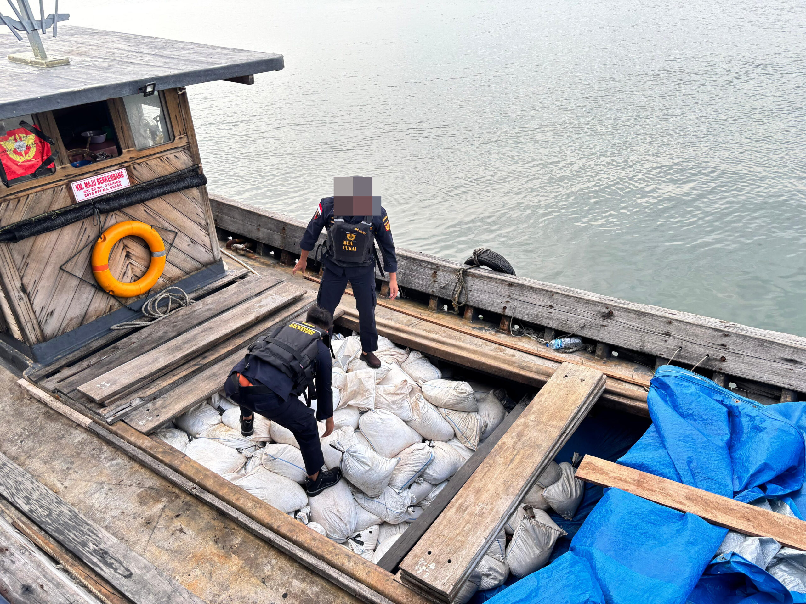 Penindakan dilakukan terhadap kapal KM Maju Berkembang pada Rabu (27/8) setelah aparat menerima informasi adanya upaya pengiriman pasir timah dari Bangka Belitung menuju luar daerah pabean tanpa dokumen sah.