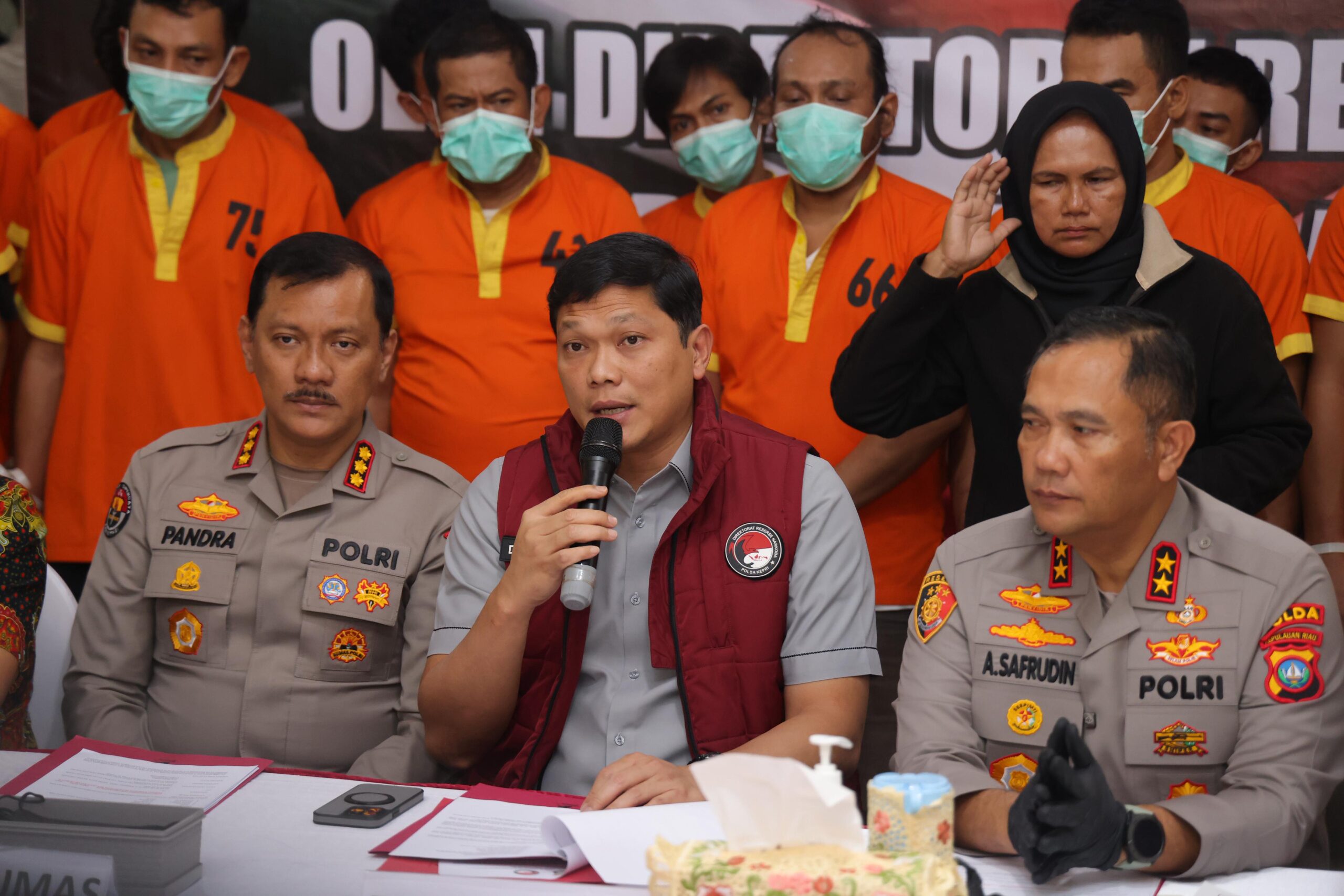“Secara keseluruhan, sejak awal tahun hingga 16 September 2025, Ditresnarkoba Polda Kepri mencatat capaian pengungkapan 216 kasus dengan 298 tersangka. Barang bukti yang berhasil diamankan sepanjang tahun ini meliputi 127.638,04 gram sabu, 2.634,61 gram ganja kering, 73.420 butir ekstasi, 556,3 gram serbuk ekstasi, 5.726 gram _MDMB 4en PINACA_, 1.000 gram heroin, 11 paket sinte gorila, 1.254 butir _happy five_, 3.273,38 gram ketamin, 405,8 gram _happy water_, serta 4.693 butir _etomidate_. Dari seluruh barang bukti tersebut, negara diperkirakan berhasil menyelamatkan lebih dari 853.040 jiwa masyarakat Indonesia dari bahaya penyalahgunaan narkotika dan obat keras berbahaya,” tegas Dirresnarkoba Polda Kepri Kombes. Pol. Anggoro Wicaksono, S.H., S.I.K., M.Si.