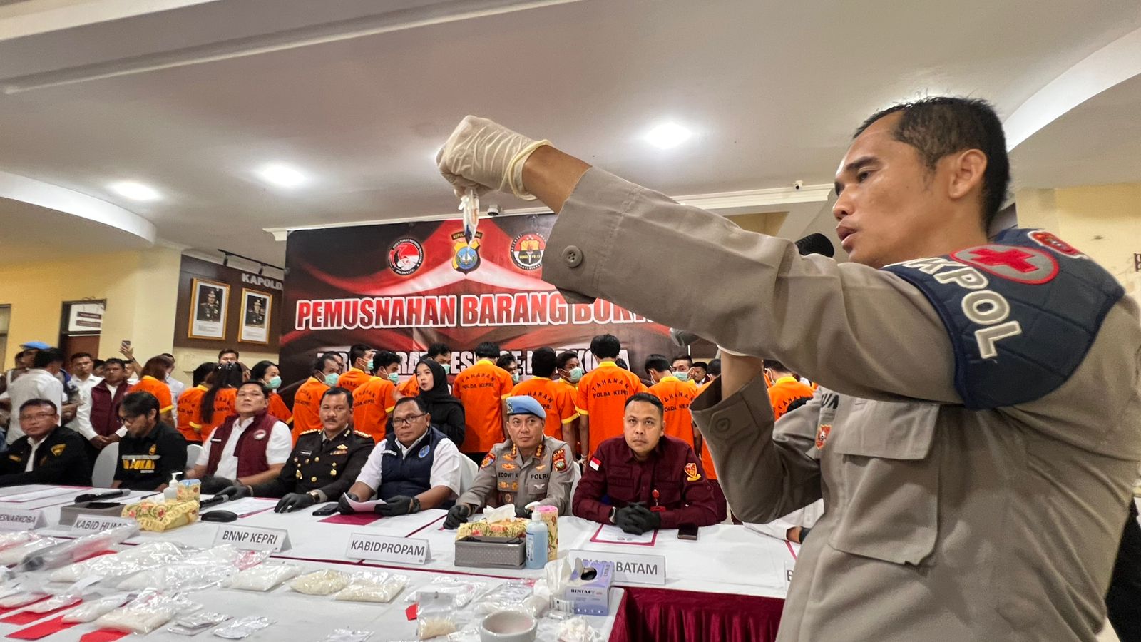 Dirresnarkoba Polda Kepri Kombes Pol Anggoro Wicaksono menyebut, jumlah barang bukti yang disita diperkirakan dapat menyelamatkan ±48.549 jiwa dari bahaya narkoba.