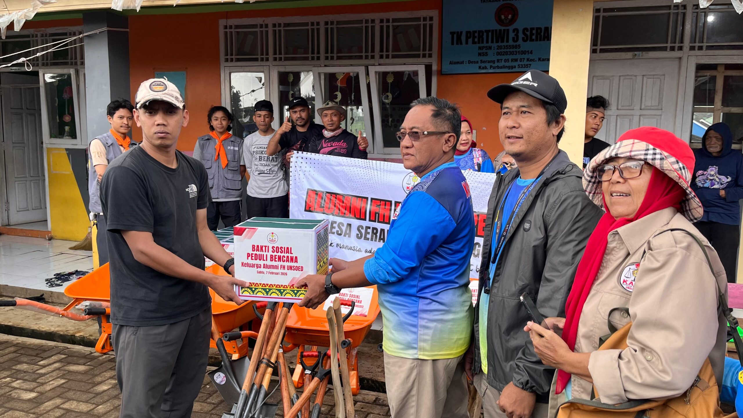 Purbalingga, STB — Keluarga Alumni Fakultas Hukum (KAFH) Universitas Jenderal Soedirman (Unsoed) menggelar kegiatan bakti sosial bagi warga terdampak banjir bandang dan tanah longsor di Desa Serang, Kecamatan Karangreja, Kabupaten Purbalingga, Sabtu (7/2).