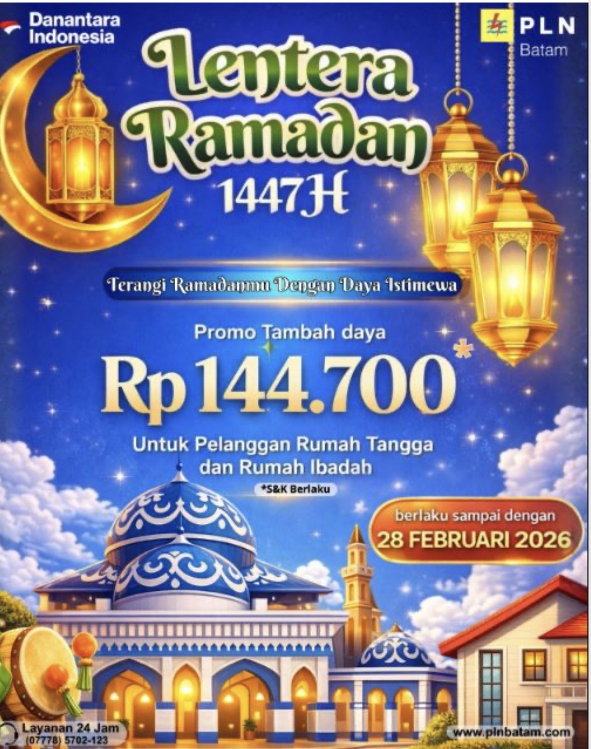“Ramadan adalah momen kebersamaan dan ketenangan batin. Kami ingin pelanggan bisa fokus beribadah dan beraktivitas tanpa terganggu oleh keterbatasan daya listrik. Semoga program ini benar-benar menjadi lentera yang memberi kemudahan bagi masyarakat Batam,” tutupnya.