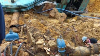 Dua pipa saluran air berukuran 600 dan 300 di Simpang Indomobil mengalami patah, Kamis (30/11/2023)…